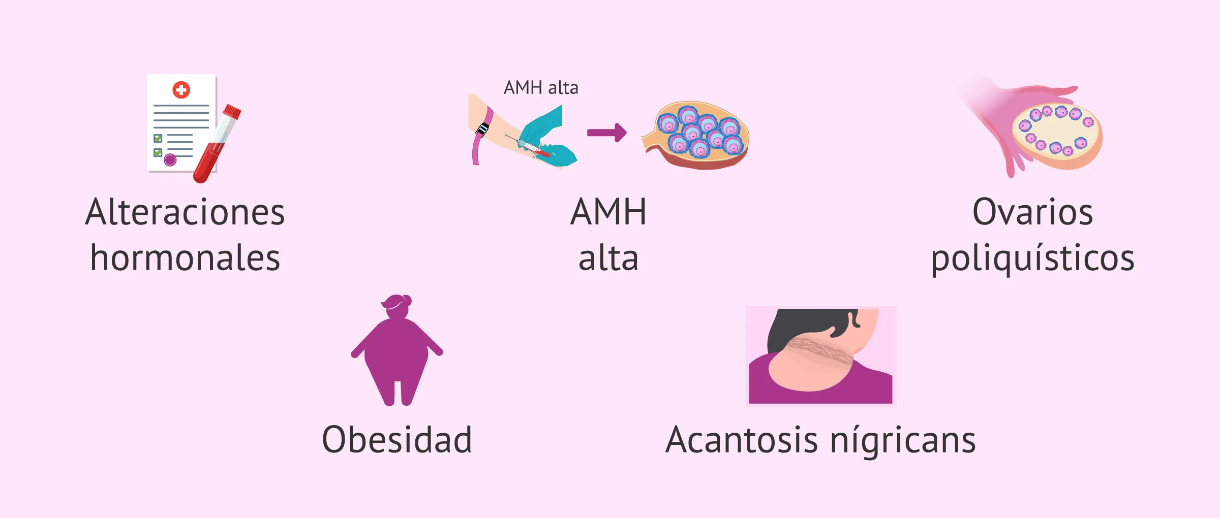 1 | Desequilibrio hormonal: Aumento de hormonas masculinas (andrógenos) que afectan la ovulación. |