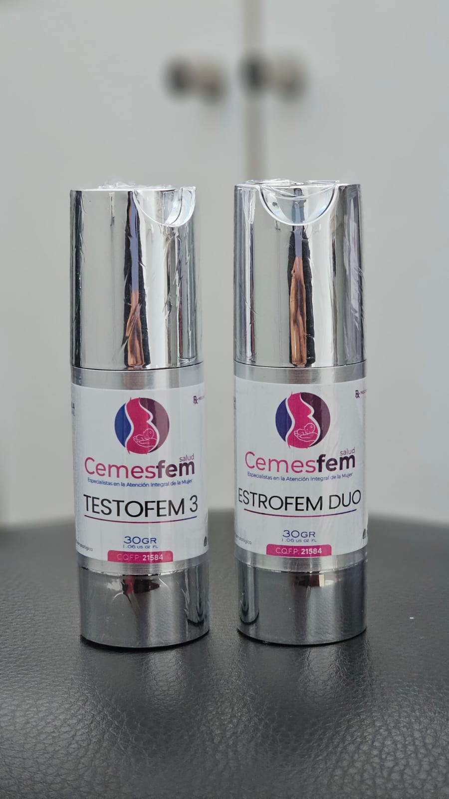 En Cemesfem ofrecemos tratamientos individualizados que incluyen Hormonas Bioidénticas como el Estriol, Estradiol, Testosterona, Progesterona, DHEA, Pregnenolona para uso Transdermico, intravaginal y demás.